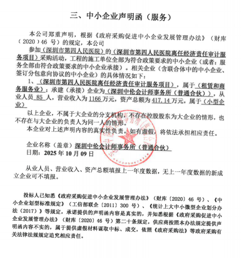 A | ******事务所(特殊普通合伙)深圳分所 | 1)营业执照(或事业单位法人证书)等证明资料复印件;2)法定代表人证明书;3)法定代表人授权书;4)政府采购投标及履约承诺函;5)招标代理服务费承诺书;6)投标报价;7)《供应商基本情况表》、社保缴纳证明材料、股权关系证明材料。 结论:资格核查通过。 | ¥116,000.00 |